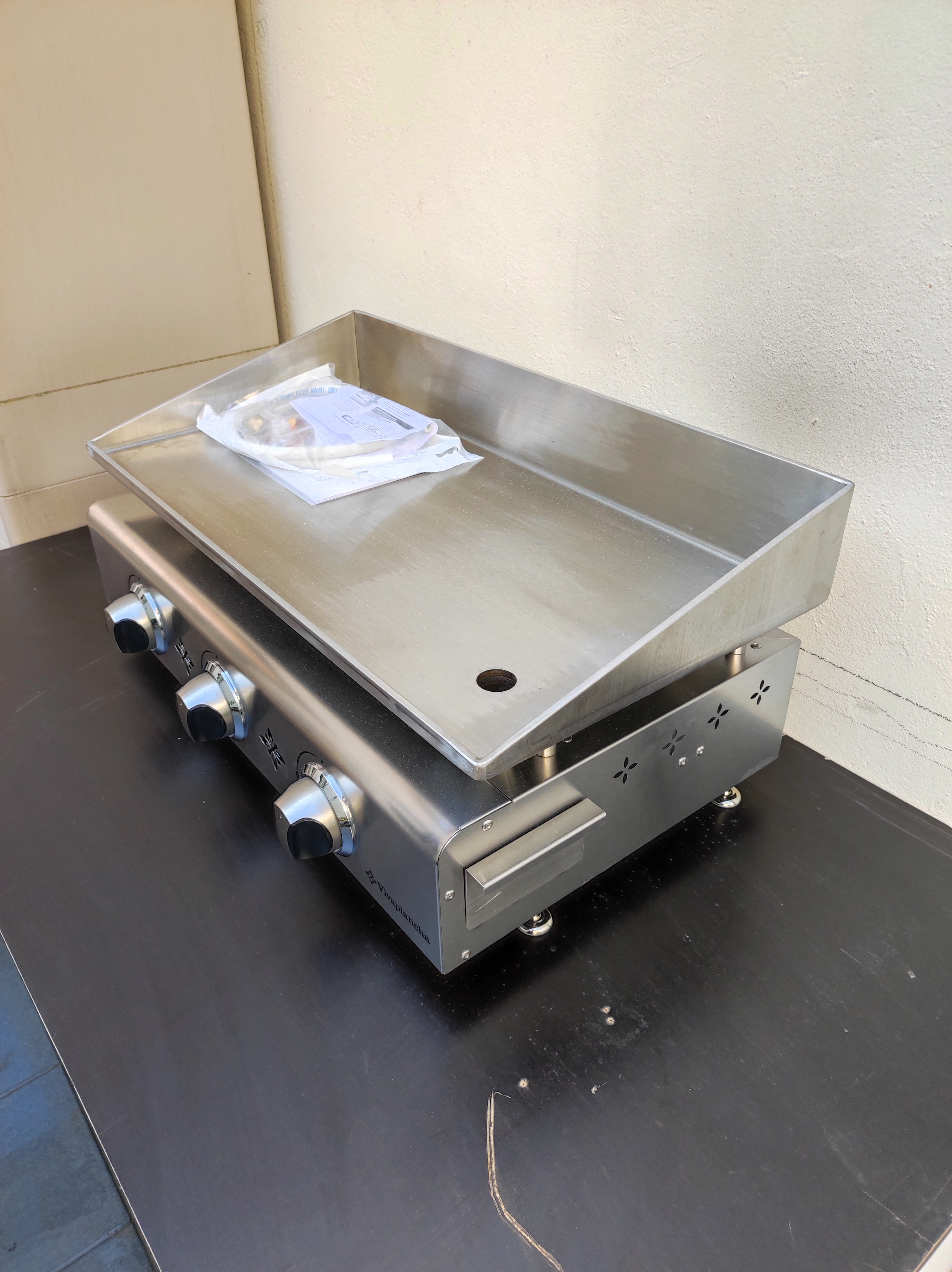 Posté le 20/07/2023 à 13:07"La plancha 3 feux en inox est vraiment superbe! C'est vraiment une excellente qualité. Le service commercial est au top et sait trouver des solutions ou bien communiquer. Le montage est trés facile, il n'y a que les pieds à visser et à poser la plaque sur le support."